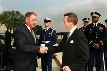 En janvier 2001, le nouveau président, George W. Bush, le remplace par Donald Rumsfeld.
