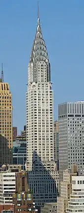En 1911, Van Alen retourna à New York, où il s'associa à H. Craig Severance. Leur partenariat devint célèbre grâce à leurs constructions de centres commerciaux à plusieurs étages, qui rompaient avec les règles classiques en la matière. En 1925, les deux partenaires se séparèrent, mais Van Alen continua ses activités à son compte à New York. Van Alen fut ensuite contacté par Walter Chrysler (créateur de la marque de voiture Chrysler) pour construire un gratte-ciel à la gloire du magnat qui désirait posséder le plus haut bâtiment au monde. Afin de réaliser cet objectif, face à une impitoyable concurrence, Van Alen imagina une arme secrète pour distancer tous les éventuels concurrents : une flèche en acier inoxydable de 58,4 mètres de haut, qui serait construite dans le bâtiment, puis hissée au sommet du gratte-ciel une fois le building terminé.