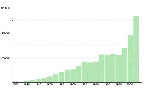 | 1950 | 45 043 | ▲ +34,83 % | |