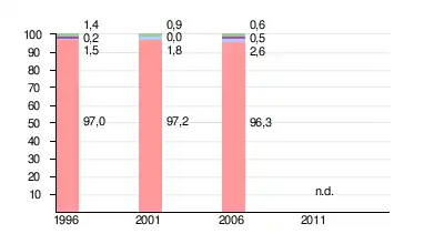 Les autochtones représentent 1,6 % de la population[14] et 2,3 % des habitants font partie d'une minorité visible[15]. Les immigrants représentent 3,3 % de la population et 0,5 % des habitants sont des résidents permanents[16]. 1,6 % des habitants ne sont pas citoyens canadiens et 85,4 % des habitants âgés de plus de 15 ans sont issus de familles établies au Canada depuis trois générations ou plus[16]. En date du , 81,0 % des gens avaient la même adresse depuis au moins un an alors que 10,2 % habitaient auparavant ailleurs dans la même ville, que 6,1 % habitaient ailleurs dans la province, que 1,7 % habitaient ailleurs au pays et que 0,8 % habitaient ailleurs dans le monde[17]. À la même date, 54,5 % des gens avaient la même adresse depuis au moins cinq ans alors que 22,0 % habitaient auparavant ailleurs dans la même ville, que 18,1 % habitaient ailleurs dans la province, que 4,4 % habitaient ailleurs au pays et que 1,1 % habitaient ailleurs dans le monde[17].