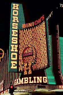 Ancienne enseigne au néon du Binion's Horseshoe Casino (1986) - sur Fremont Street au centre-ville de Las Vegas. Site de l'actuel Binion's Gambling Hall and Hotel, à Fremont Street Experience.
