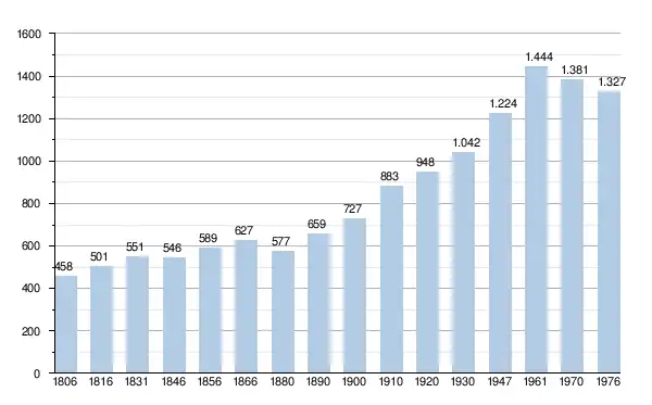 - Sources : INS, Rem. : 1831 jusqu'en 1970 = recensements, 1976 = nombre d'habitants au 31 décembre[2].