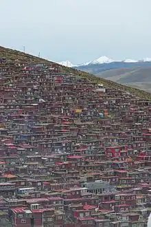 La population de l'Institut bouddhiste de Larung Gar, d'après l'institut en 2016, dépasse les 10 000 bhikshu[5],[6],[7].