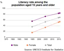 L'Arabie saoudite, depuis 2015, a lancé un blocus qui empêche l'importation de produits alimentaires, déclenchant la plus grande crise humanitaire du moment[7]. Le Yémen se classe 183e sur 191 pays à l'indice de développement humain de l'ONU en 2021 avec un IDH de 0,455 contre 0,383 en 1990[5].