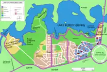 |   Yarralumla (en rose), au sud du lac Burley Griffin. | |||