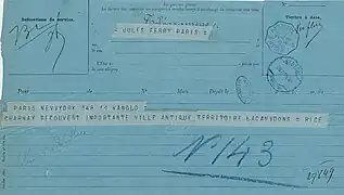 Télégramme de Désiré Charnay informant Jules Ferry de la découverte d’une cité maya inconnue.