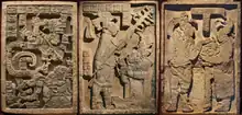Linteau 53 de la structure 55 : Itzamnaaj Bahlam III (Bouclier-Jaguar III) et son épouse Dame Ik'-Crâne, mère d'Yaxun Bahlam IV en 709[11].
