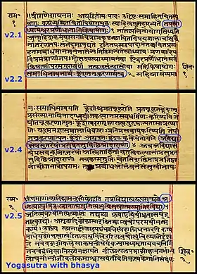 Le Yoga sūtra de Patañjali et le Yoga-Bhashya de Vyāsa (commentaire sur les Yoga sūtras de Patañjali) sont des classiques de la littérature sanskrite antique[5].