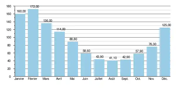 | Armançon | Brienon/Armançon | 29,60 | 1,900 | 190 | 280 | 330 | 390 | 450 | 4,49 | 349 | 338 | 314 | 2 990 |