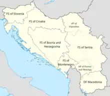 La Yougoslavie fédérale démocratique était composée de 6 républiques et de 2 régions autonomes :