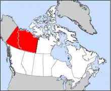 - Une partie des Territoires du Nord-Ouest située à l'ouest du 109e méridien, incluant le district de Mackenzie, le district de Keewatin et les districts de Franklin et d'Ungava.