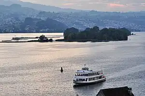 Le bateau Wädenswil croise devant l'île d'Ufenau, avant d'accoster à Rapperswil.