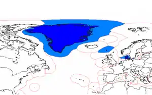 Le cas du Canada est inhabituel en ce que sa ZEE, qui couvre une superficie de 2 755 564 km2, est légèrement plus petite que ses eaux territoriales[26]. Cette dernière s'étend généralement à seulement 12 milles marins de la côte, mais inclut généralement aussi les eaux intérieures telles que la baie d'Hudson (environ 360 milles marins, ou 560 kilomètres), le golfe du Saint-Laurent et les eaux intérieures de l'archipel arctique canadien.