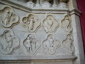 ![]() Partie extérieure (gauche) du soubassement gauche du portail Saint-Firmin |