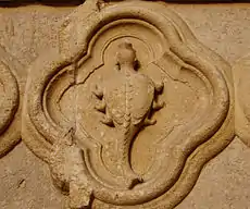 ![]() Partie extérieure (droite) du soubassement droit du portail |