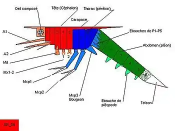 Le grand développement de l’abdomen, alors que l’organogenèse de la partie postérieure du thorax est mise en attente, peut sembler surprenant. Elle[Qui ?] doit présenter un avantage sélectif dans le milieu planctonique. [réf. souhaitée]