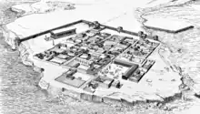 - Le bâtiment B, de plan rectangulaire, serait le temple d'origine. Cette thèse est étayée par des découvertes remontant au VIIIe siècle av. J.-C. ;