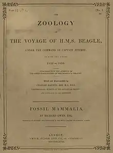 - Part 1. Fossil Mammalia (1838–1840), de Richard Owen (Preface et Geological introduction de Darwin)