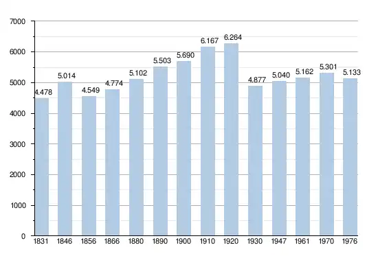 - Sources : INS, Rem. : 1831 jusqu'en 1970 = recensements, 1976 = nombre d'habitants au 31 décembre[2].